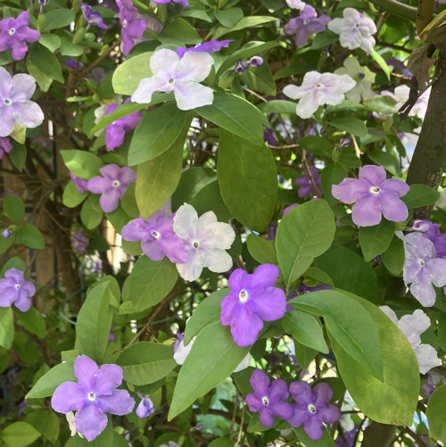 写真はニオイバンマツリという私の1番好きな花です。初夏から夏にかけて長く咲く花で、大変良い香りがします。見つけたら、ぜひかいでみてください🌸